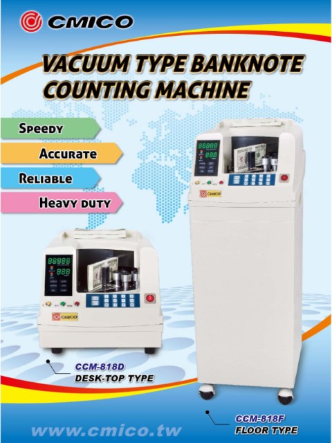 CMICOs CCM-868 is a floor-standing vacuum banknote counter designed for cash transactions in banks and currency exchange centers. Understanding the importance of the counter machine for the financial setting, we are committed to developing and manufacturing the key components in Taiwan to provide our customers with a high-quality, reliable machine. The essential advantage of our machine is a special spindle that can be attached to banknotes with different lengths to improve the stability during the counting process. It greatly enhances the financial personnels efficiency in their work.